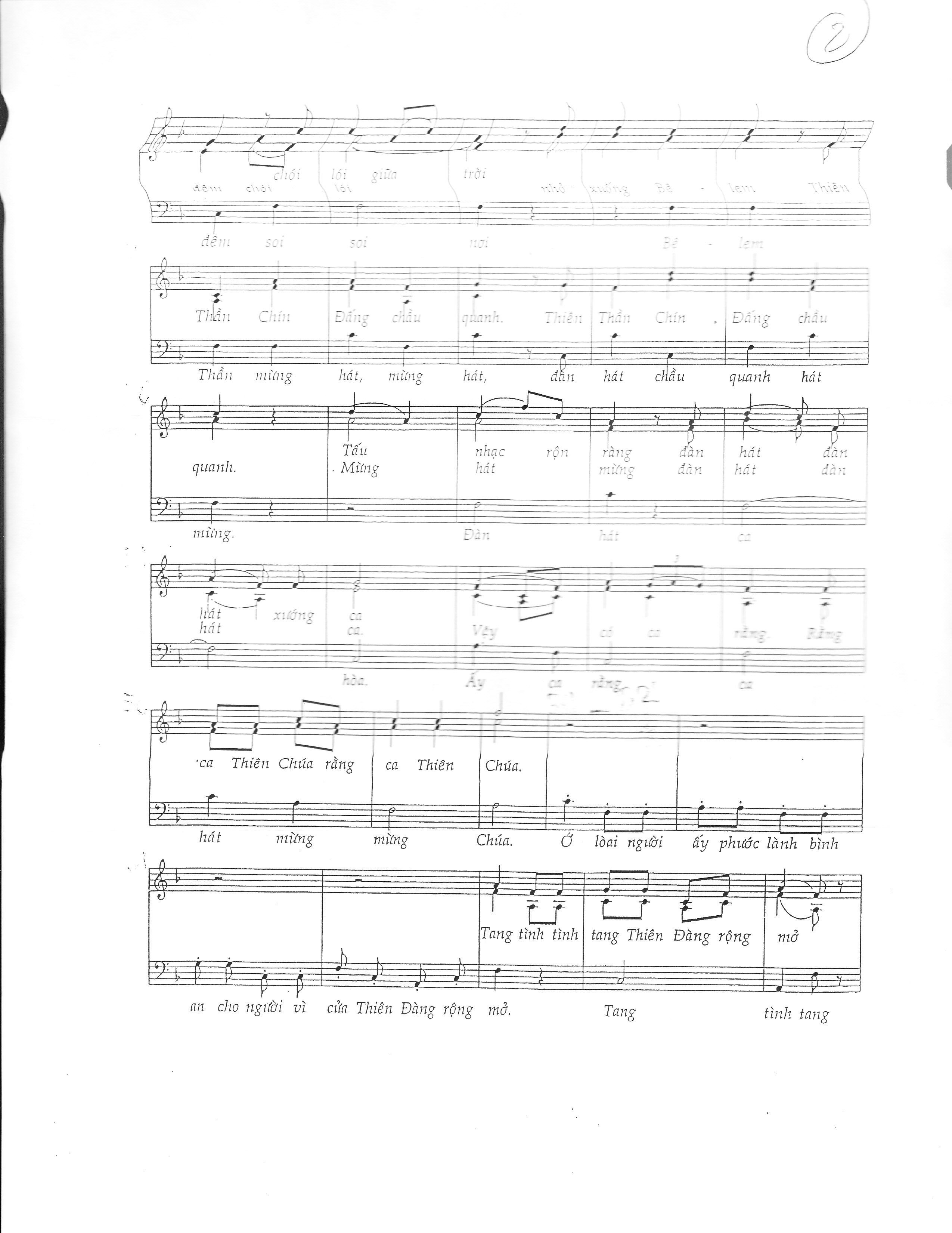 - Hôm qua mx đi dự đêm văn nghệ và Thánh ca Giáng sinh tại giáo xứ Đức Mẹ La Vang, Santa Ana nghe ca đoàn giáo xứ La Vang hát bài "Nửa Đêm Mừng Chúa Ra Đời" của Lm. Phaolô Đạt, mở đầu mx nghe loáng thoáng hòa âm của bè Alto hơi là lạ, nhưng cũng OK; nhưng đến đoạn ... "Chúa Cả ra ơn" thì mx không tin vào tai mình nữa - measure 70 chữ ra thay vì 2 note FA-RE (F-D) thì ca đoàn hát FA-MI (F-E) Đến khi lập lại lần thứ 2 thì rõ ràng đây là cái sai không chấp nhận được, nó phá hỏng toàn thể cấu trúc của bài hát (có thể mx quá chủ quan nhưng đó là cái cảm nhận của mx khi nghe qua)